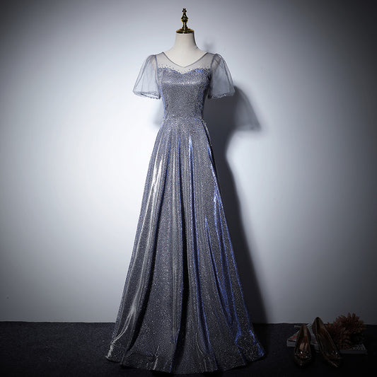 Silver evening dress new long sequins dress bridesmaid dress prom dress fg142