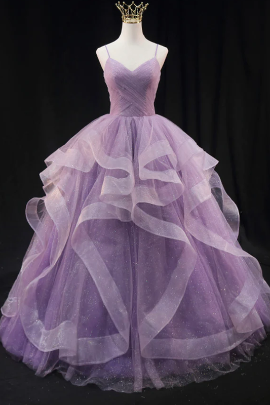 Purple Ball Gown Organza and Tulle Sweet 16 Dress with Lace Appique, Purple Formal Gown fg99