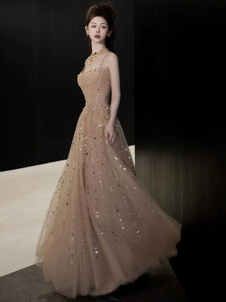 A Line Champagne Long Prom Dress Sexy Evening Dresses fg7663