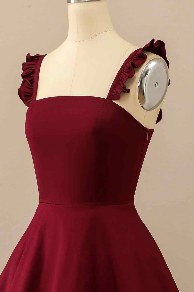 Burgundy A-line Ruffle Straps Satin Mini Homecoming Dress fg3452