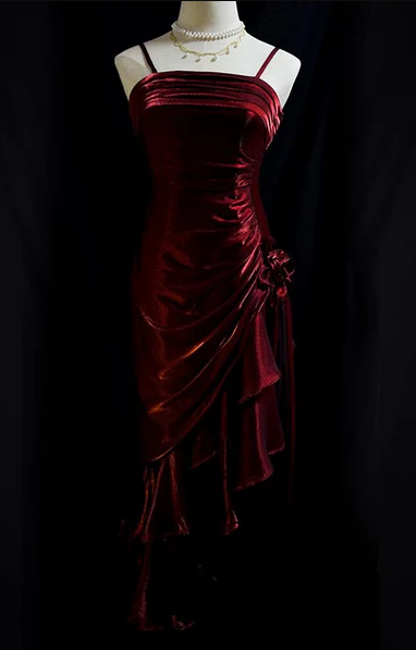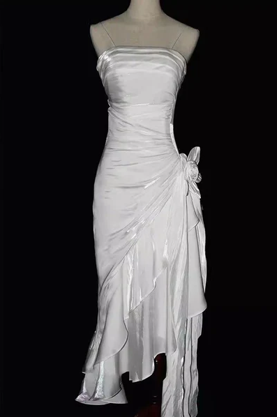 Charming Mermaid High Low Satin Straps Party Dress Vintage Style Prom Dress fg5848
