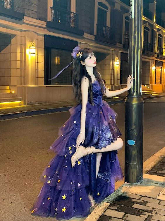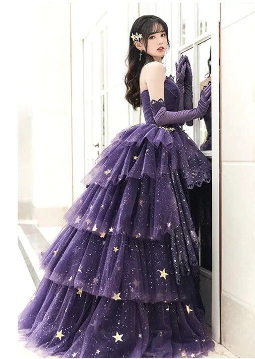 Elegant Purple A-Line Prom Dress Stars Love Elegant Lolita Party Dress fg5105