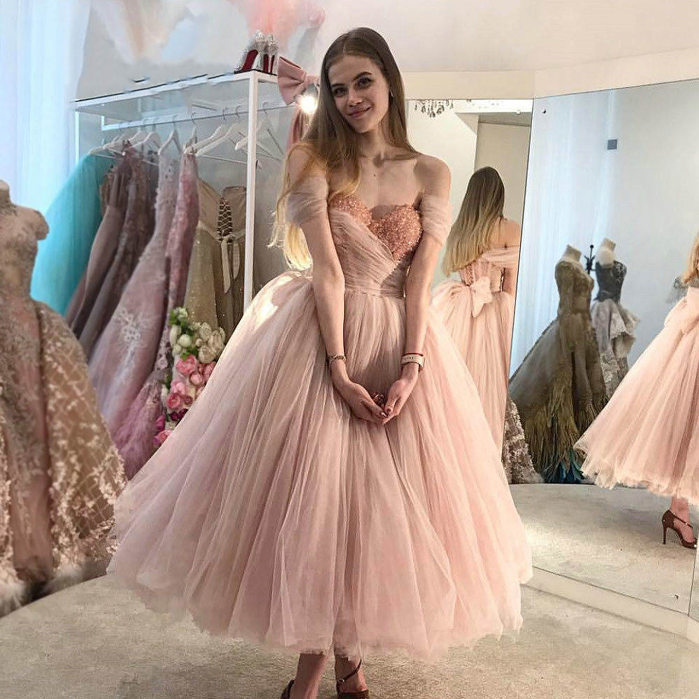 Off the Shoulder Pink Beaded Long Prom Dress fg2983