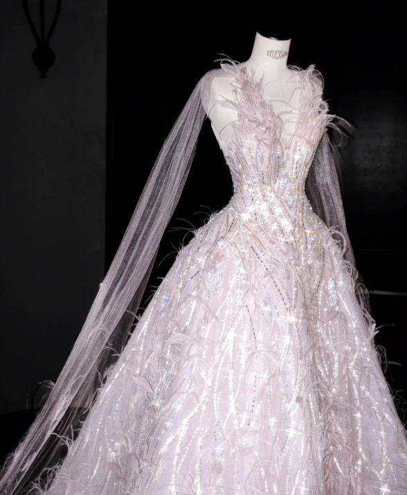 Pink Feather Prom Party Dress Sweet 16 Birthday Gowns fg8673