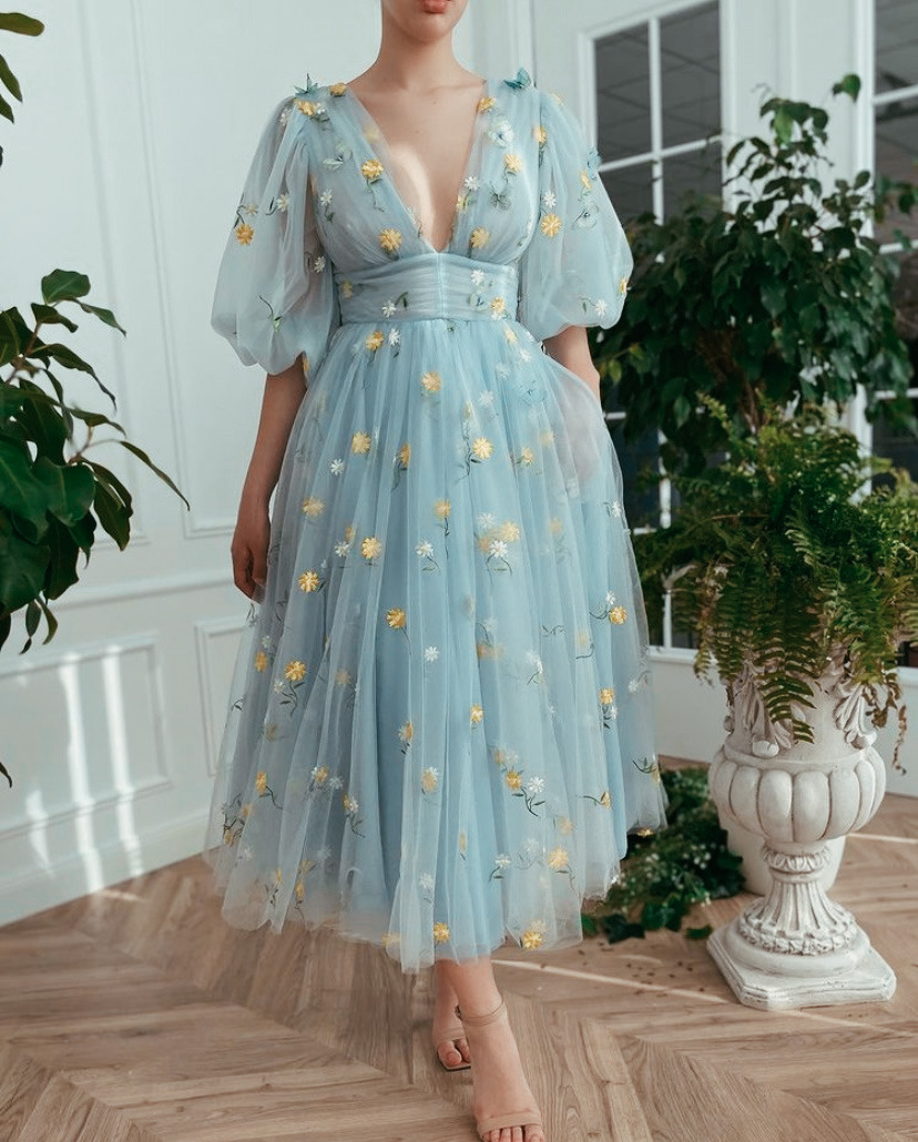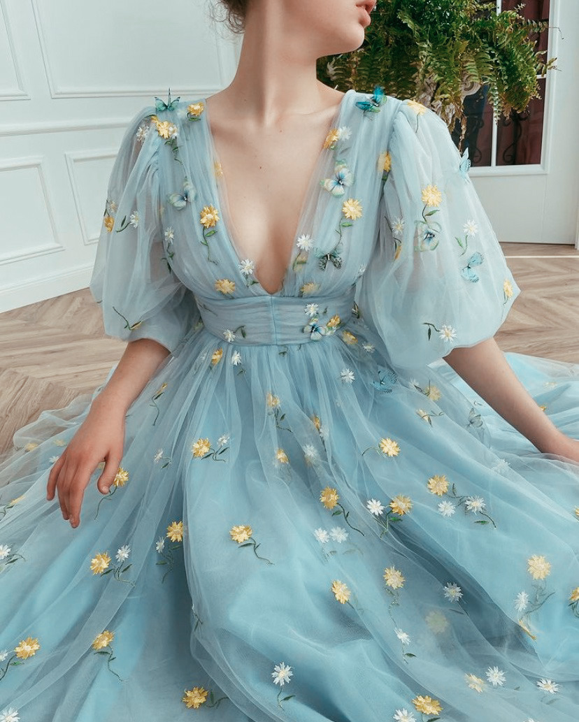 Popular V Neck Formal A Line Tulle Bridal Gown Long Prom Dresses fg1693