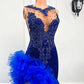 Royal Blue Mermaid Prom Dress Ruffled Evening Dresses with Slit fg7640