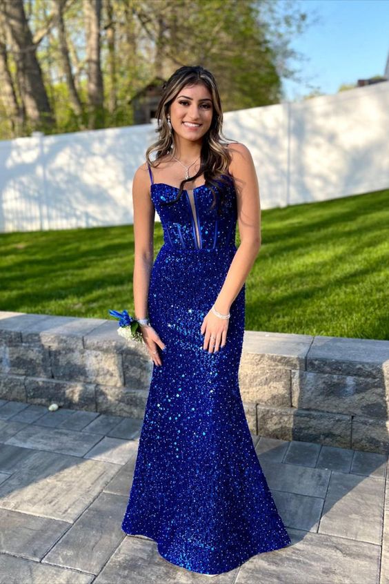 Royal Blue Sequin Mermaid Long Prom Dress fg4190