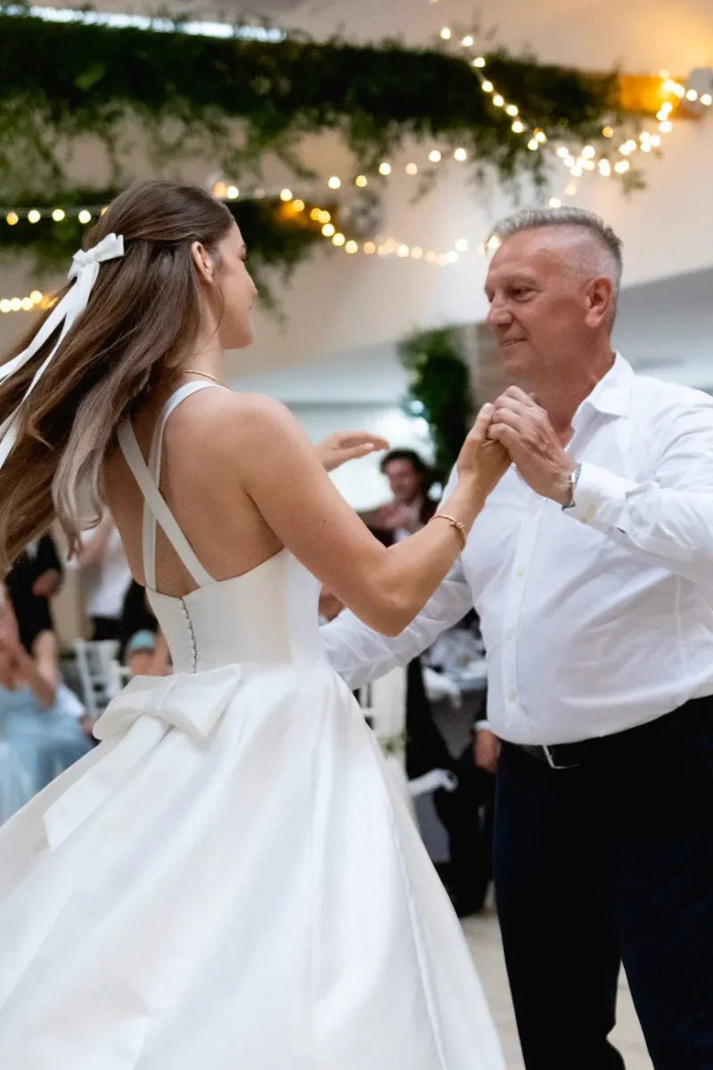 Satin Tulle Midi Wedding Dress, Simple Square Neckline Tea Length Formal Prom Dress fg7288