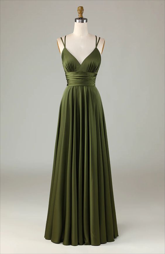 Simple Prom Dresses, A-line Sleeveless Olive Long Bridesmaid Dress fg5010