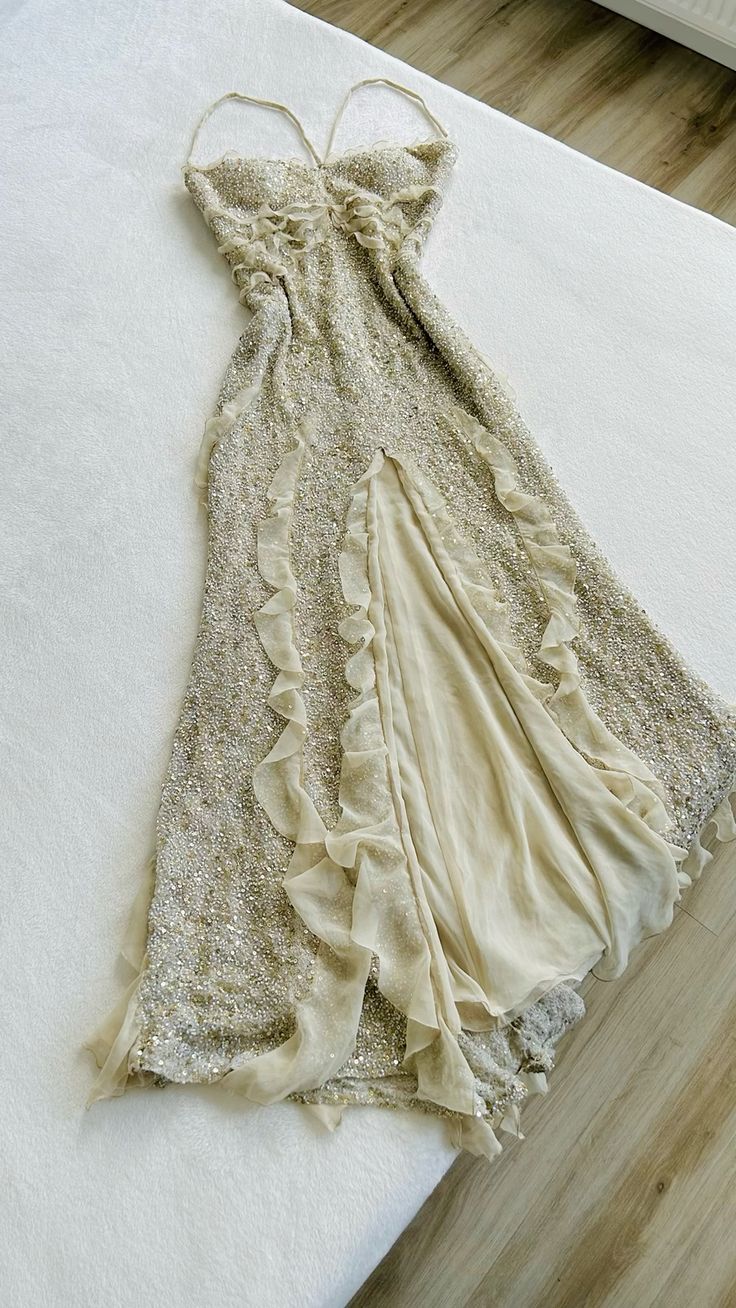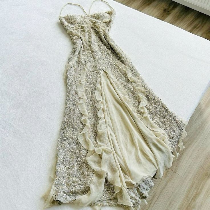 Spaghetti Straps Sequin Long Evening Prom Dresses With Slit fg6723