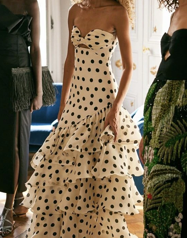 Strapless Polka Dots Dress Fashion Prom Evening Dresses For Women fg6236