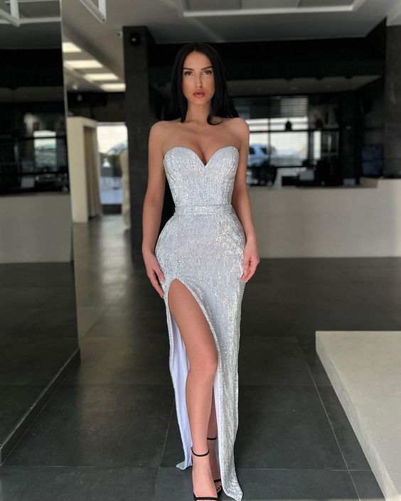 Stunning Sequin prom dresses, Classy prom dresses, Silver Prom dress fg2995