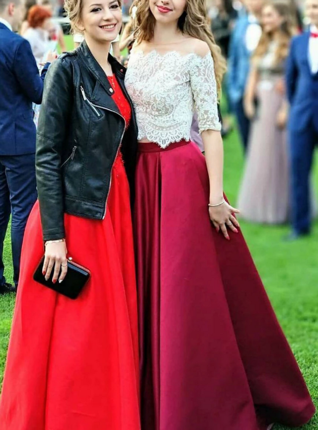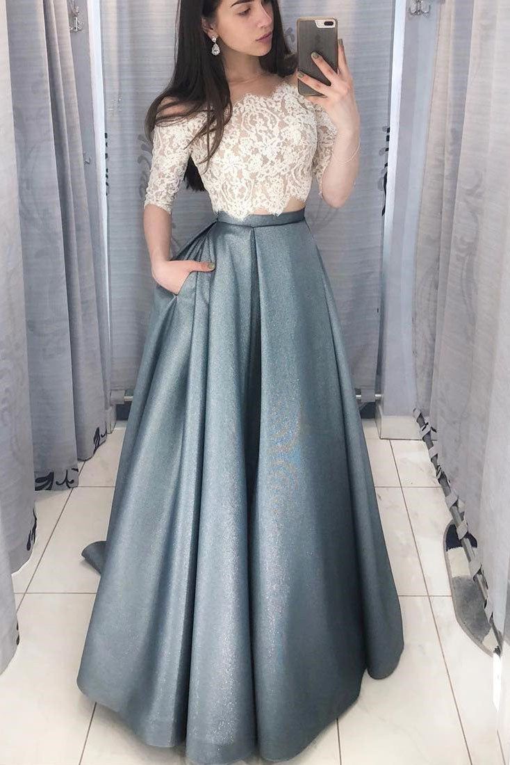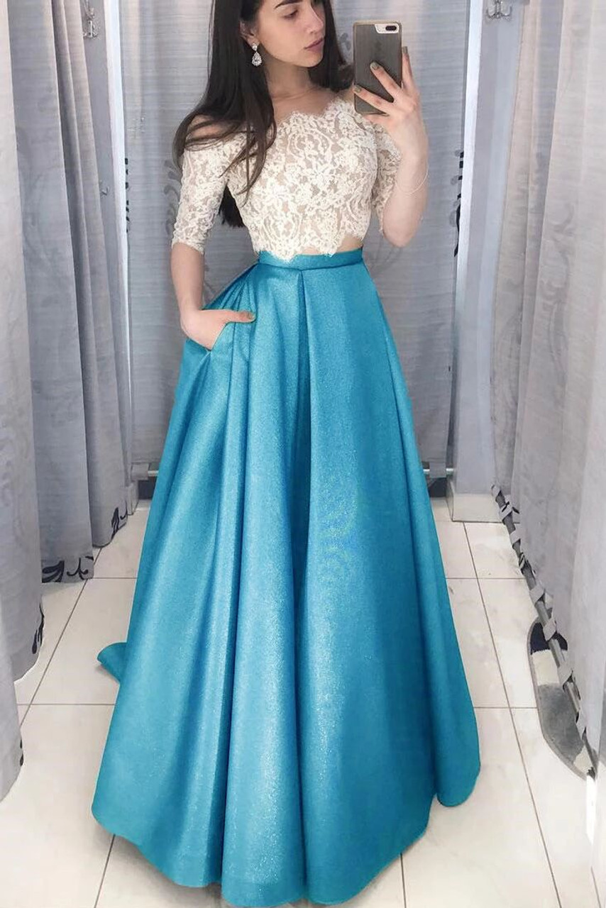 Two Piece Long Prom Dress with White Lace Top fg6170