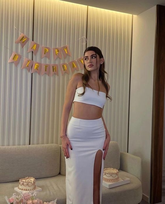 Two Piece White Long Evening Dress Prom Gown fg4562