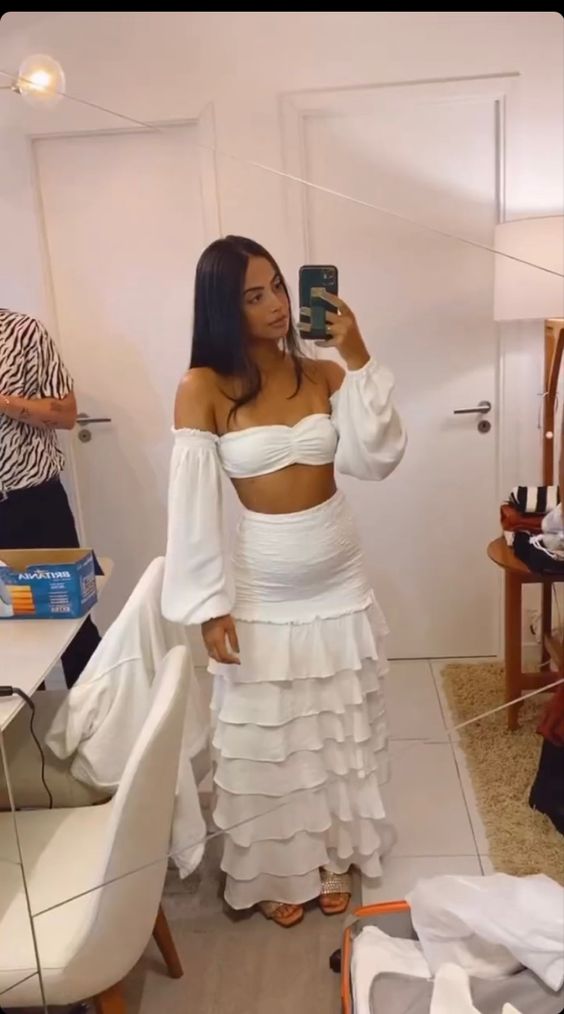 Two Piece White Prom Gowns Lady Fashion Party Dress fg5812