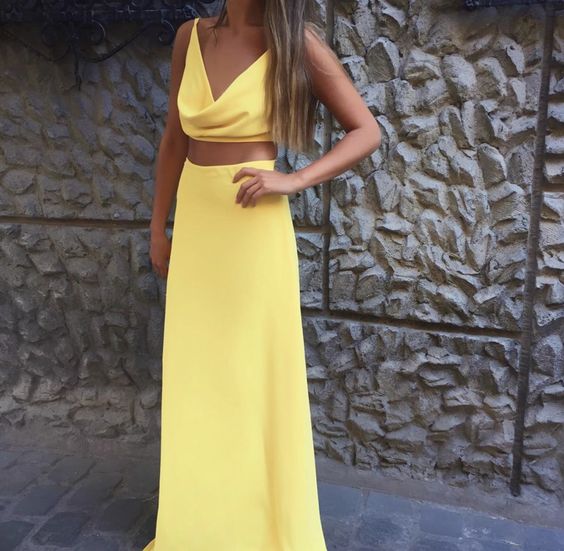 Yellow Two Piece Fashion new prom dress party dress evening dress fg2066