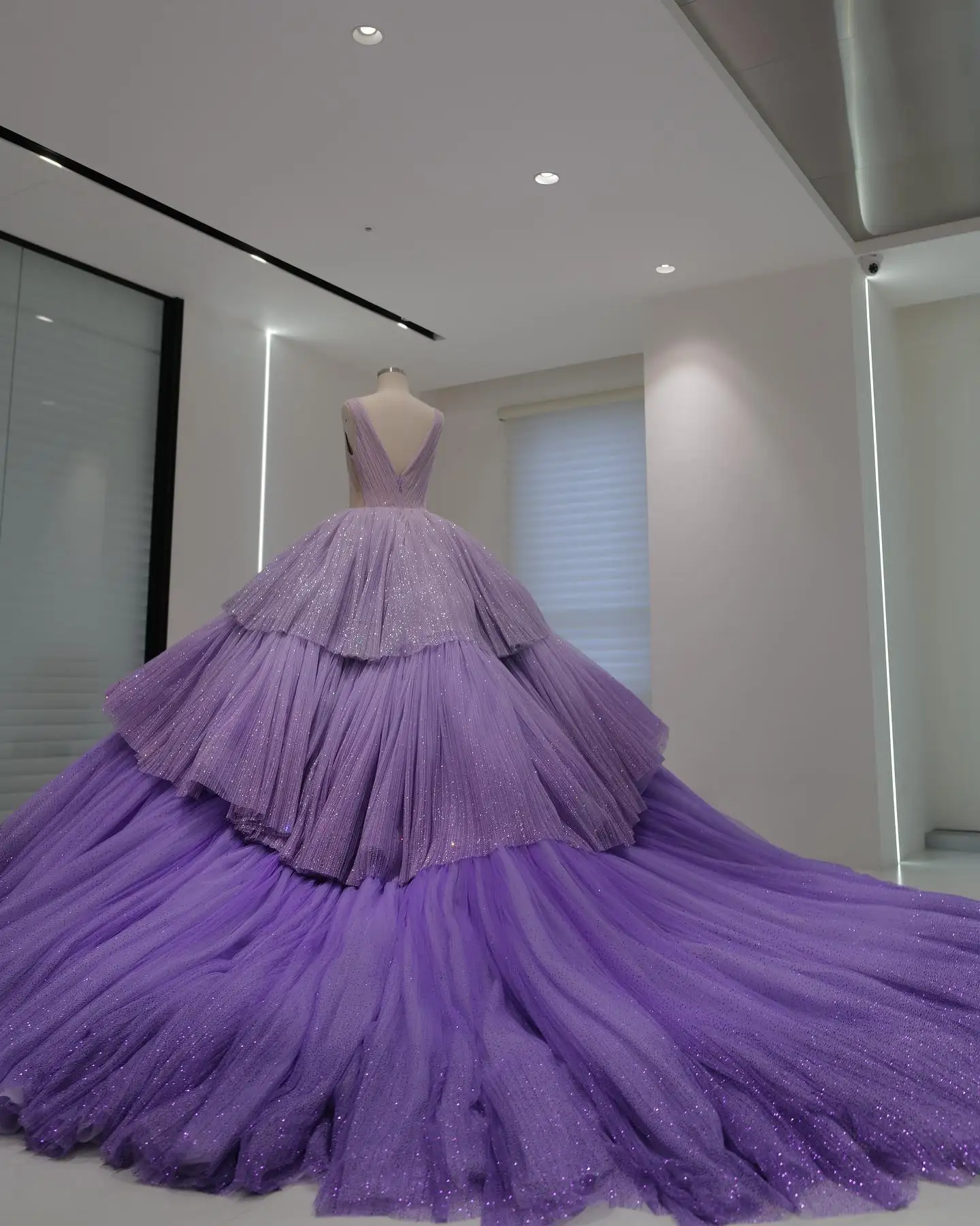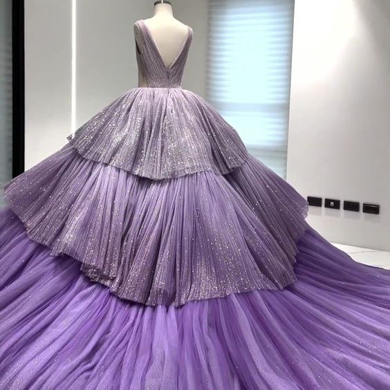 A Line Ball Gown Gorgeous Dresses, Sparkly Tulle Dress, Formal Dresses,Tiered Ruffles Classy Celebrity Dress fg4959