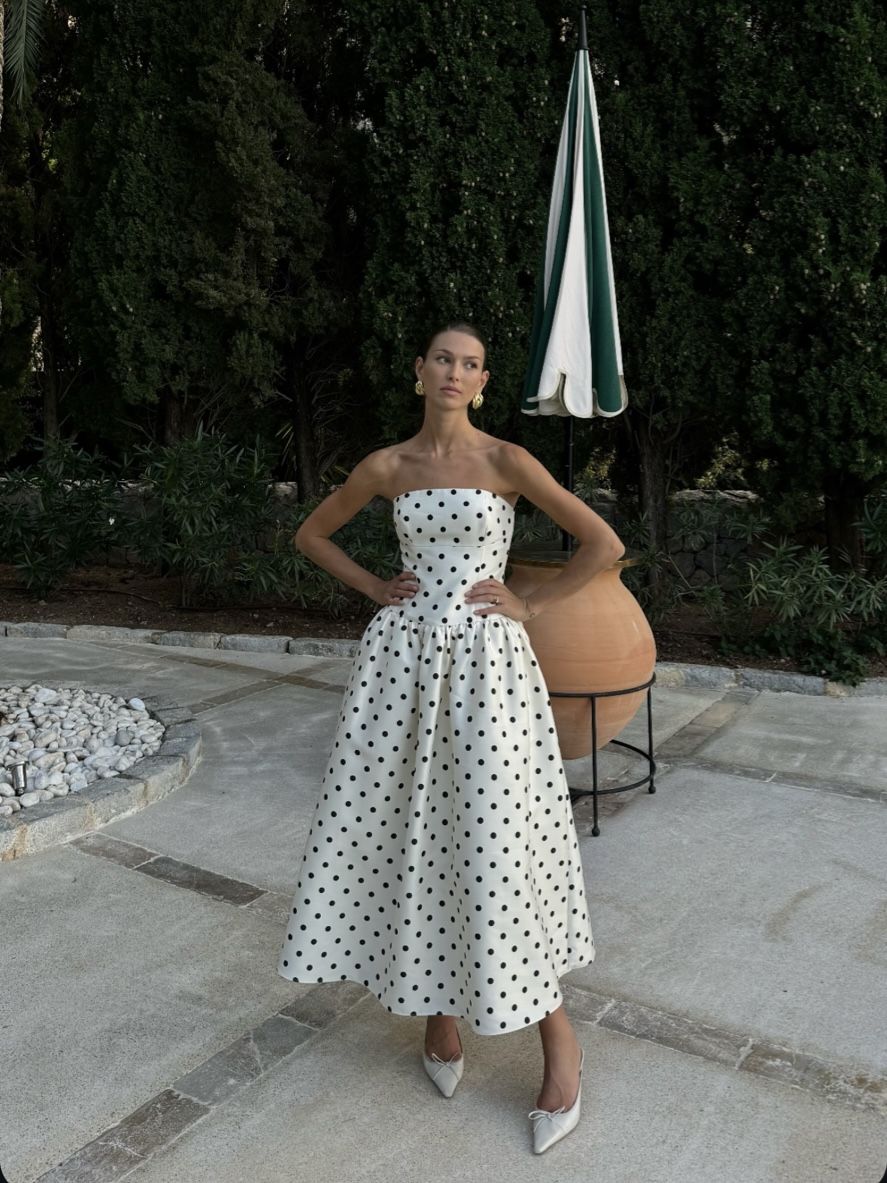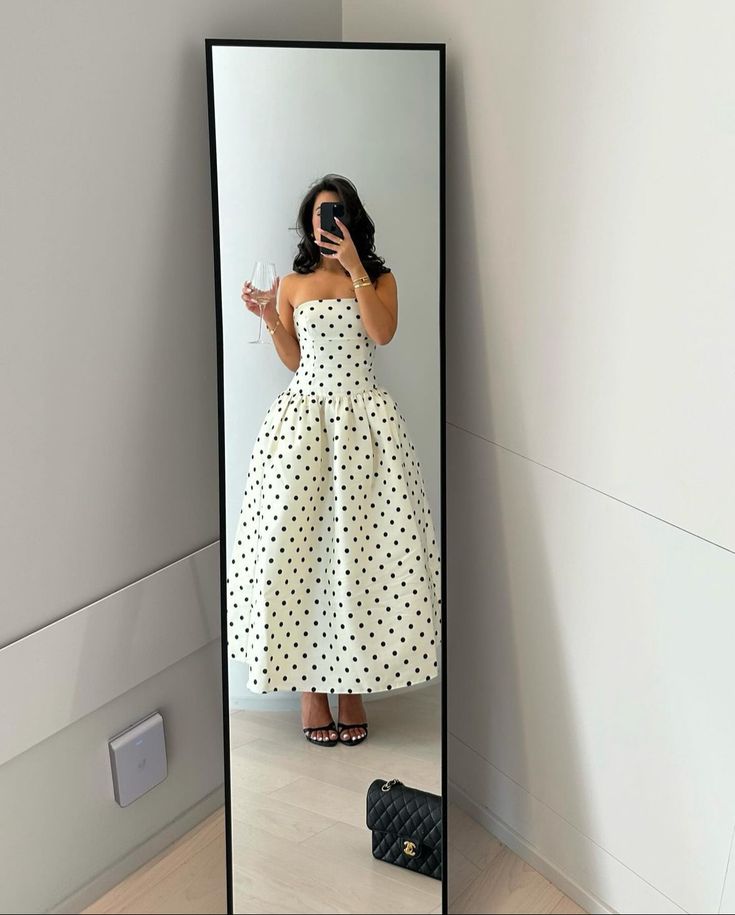 A Line Black Polka Dots Prom Dresses New Arrive Party Dress Evening Dress fg7883