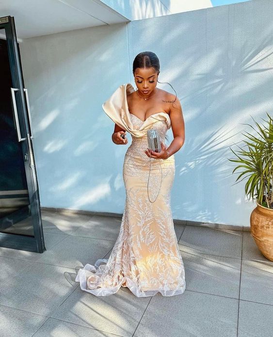 Champagne One Shoulder Mermaid Prom Dresses Party Gowns fg4567