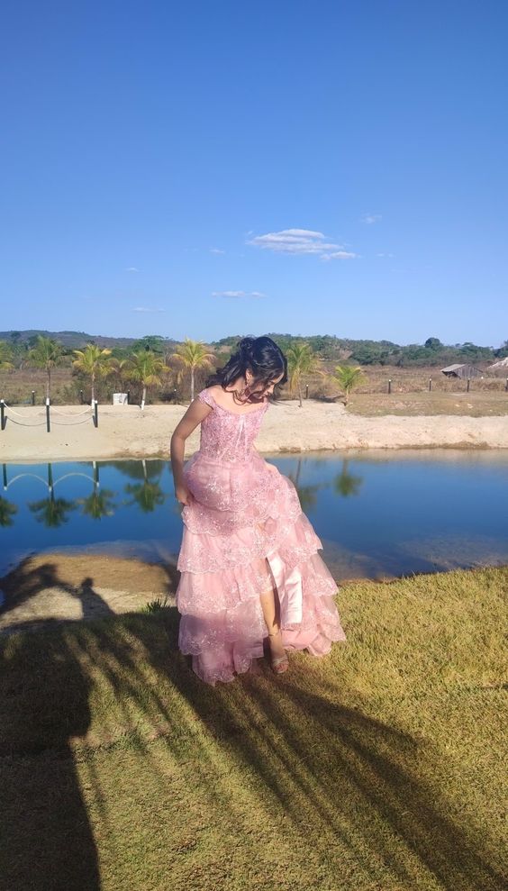 It is a beautiful dress but is too long for me. I am a short lady. I knew it maybe a little long, but was too long for me.