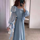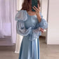 Light Blue Puff Sleeves Long Evening Dress fg6688