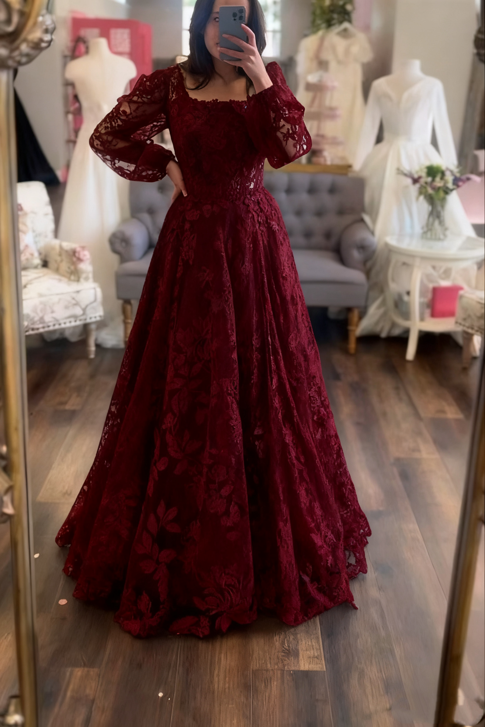 Modest Wedding Dress Long Sleeve Lace Applique Classic A-Line Wedding Dress fg5220