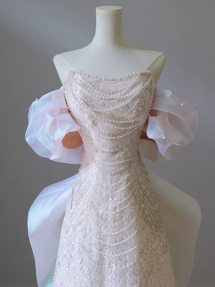 Pink Off Shoulder Long Prom Dress Sequin Evening Party Dresses fg7705
