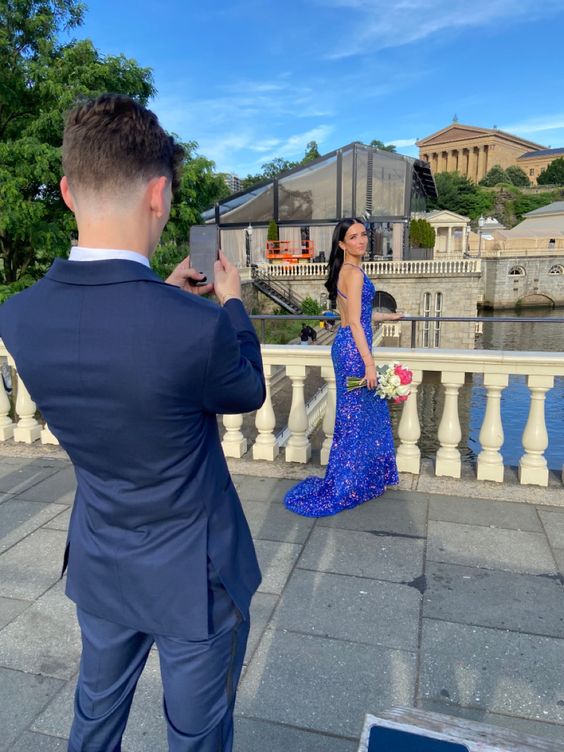 Royal Blue Sequin Mermaid Prom Dresses Evening Party Formal Gowns fg3776