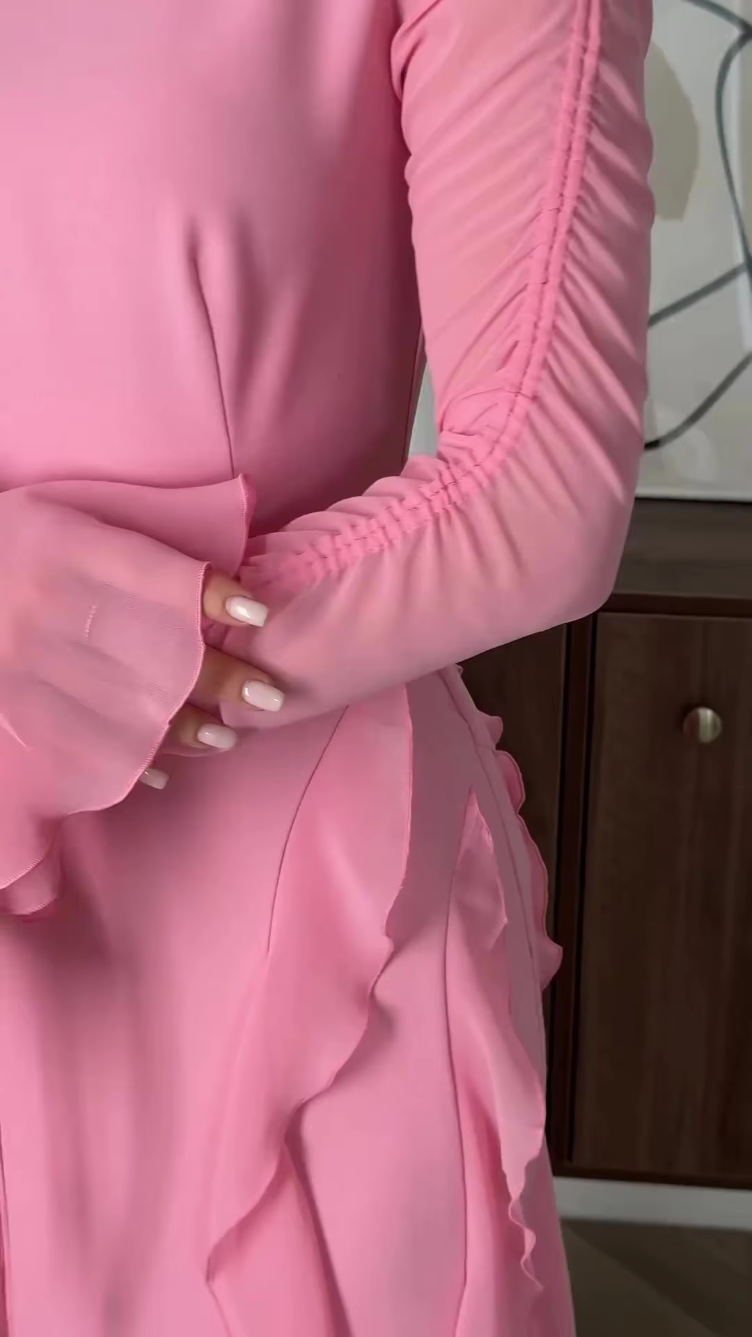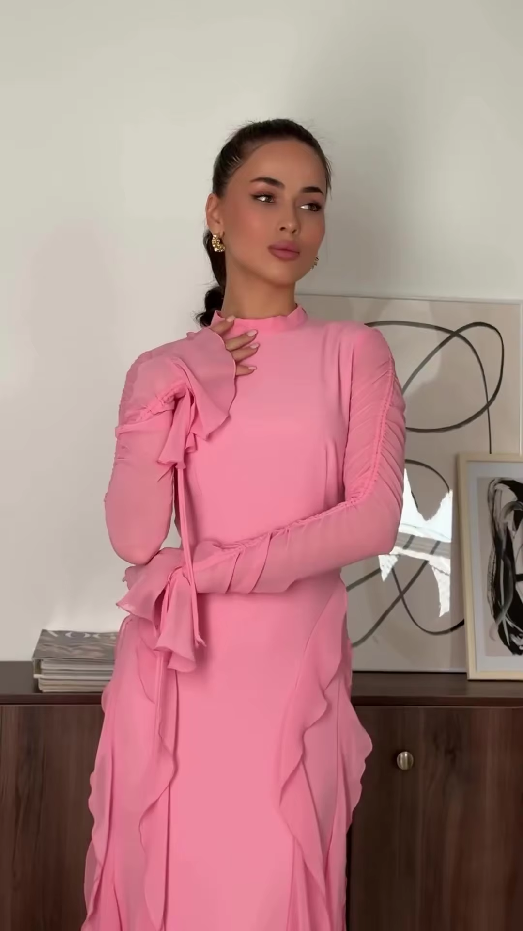 Ruffle Chiffon Women's Casual Dress Long Party Dress fg7442
