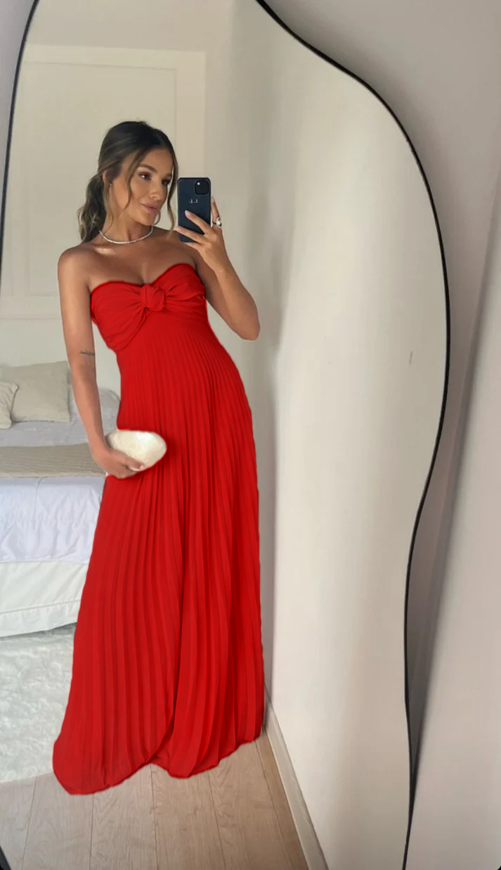 Strapless A Line Pink Long Prom Dress Pleated Formal Party Gown fg6582