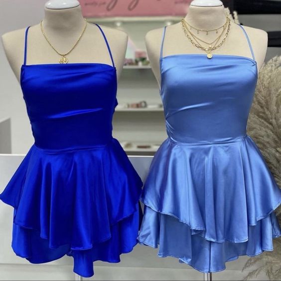 Vintage A line Royal Blue Birthday Outfits Satin Homecoming Dress fg6399